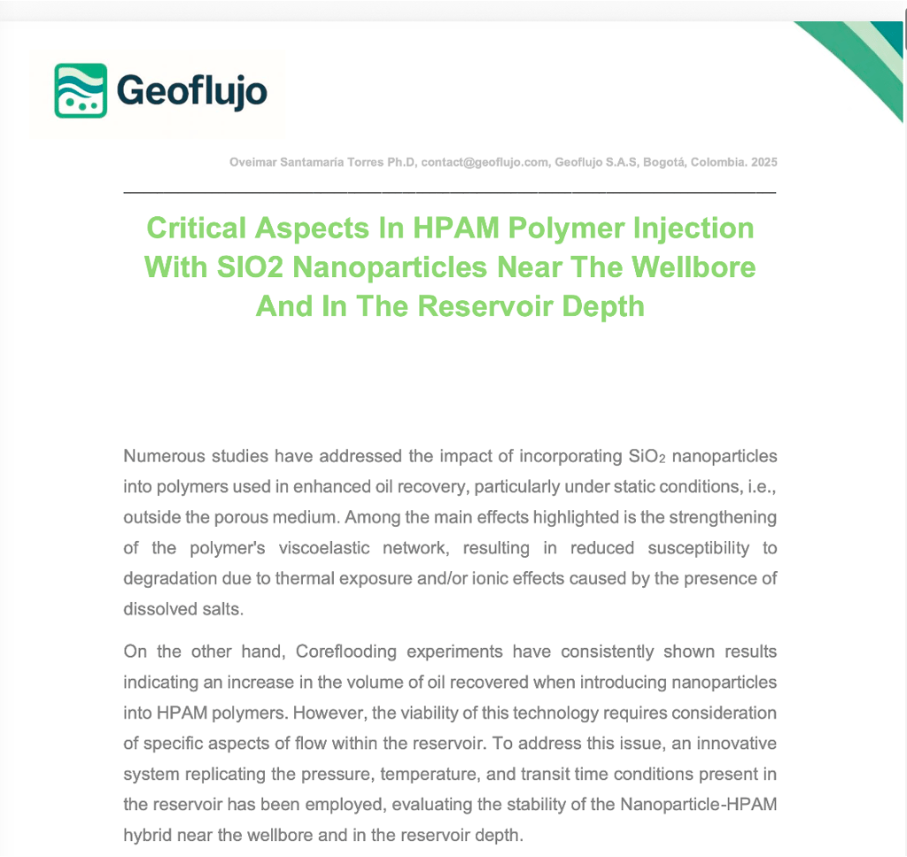 Coreflooding experiments have consistently shown results indicating an increase in the volume of oil recovered when introducing nanoparticles into HPAM polymers. However, the viability of this technology requires consideration of specific aspects of flow within the reservoir. To address this issue, an innovative system replicating the pressure, temperature, and transit time conditions present in the reservoir has been employed, evaluating the stability of the Nanoparticle-HPAM hybrid near the wellbore and in the reservoir depth.